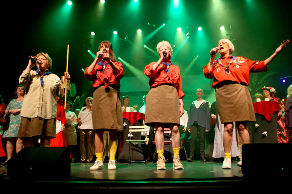 Als koor treden we regelmatig op bij festivals, feesten en verzorgingshuizen. Ook hebben we af en toe een eigen productie waarin we onze grootste meezingers ten gehore brengen in een leuke show of revue.
